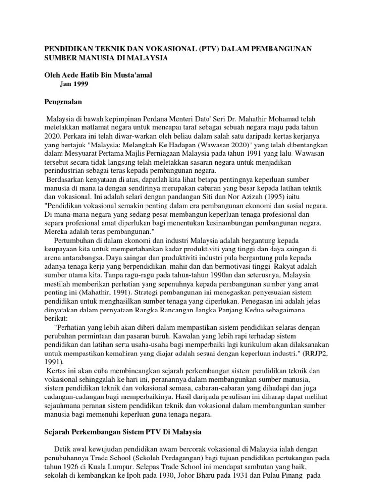 05.07.2020 · pendidikan teknik dan vokasional yang merupakan salah satu cabang sistem pendidikan yang berlandaskan industri untuk melatih individu dalam kemahiran tertentu seperti bidang automatif, animasi dan hospitaliti.